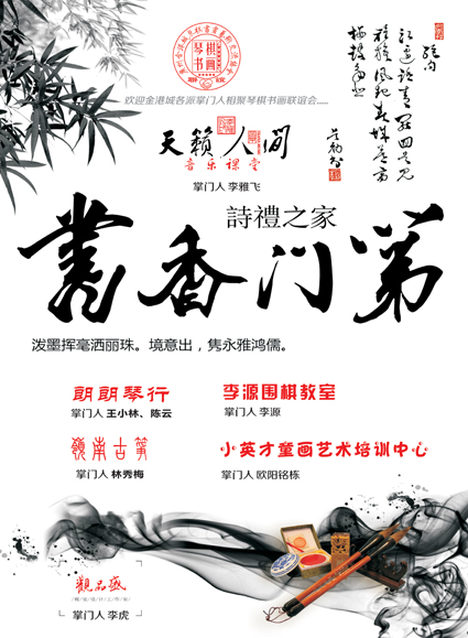 三、活动主题:金港城琴棋书画联谊会寻找“金港城小全才”——中国经典传统文化传承、推广与学习